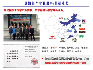 曹锦轩教授研究聚焦于畜产品加工与资源功能化利用:肉制品嫩度改善机制,传统肉制品风味形成与稳定性调控机制,功能性糜类肉制品与骨汤开发,畜产危害因子快速检测,畜产源生物钙营养转运,畜产源微纳分子自组装与递送。食用品质是肉制品最重要的商品经济指标,主要包括嫩度、持水性、色泽、风味,其加工影响因素与肌肉内部结构及成份形态有关。作为肌细胞内部重要亚细胞器成份,肌原纤维结构变化(物理、生化、化学)对肉制品食用品质有重要影响。在《肌原纤维结构与肉制品食用品质》这篇课题中,曹教授作为主讲人围绕肌原纤维结构变化线索,阐明了肉制品嫩度和风味形成机制。从细胞色素C介导的凋亡酶级联反应角度,探明了肉品嫩度改善机制(caspase-3诱发微丝解聚导致肌原纤维崩解);深度追踪肌原纤维水解产物,揭示了肉制品滋味形成机制(肌球蛋白MHC和LC水解分别产生鲜味和苦味);探索肉制品香气的挥发与保留,厘清了气味稳定原理(肌原纤维对肉香气成份的吸附)。因此他认为将上述肌原纤维结构与肉制品食用品质互作关系,合理运用于肉类工业中,对肉制品食用品质进行工艺调控,可取得显著经济效益。