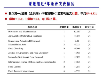 “立志欲坚不欲锐,成功在久不在速”曹锦轩教授能够拥有如此大的成就绝非一蹴而就,关键在于他能够长久坚持专心致志地做一件事情。曹锦轩教授在教书育人的同时,还担任北京工商大学“畜产品加工与资源功能化利用”课题组组长,主持或完成国家级课题7项(国家自然科学基金4项),第一/通讯作者(含共同)发表SCI收录期刊论文81篇,其中JCR一区71篇,副主编国家十二五教材两部,授权国家发明专利42项(转让转化9项)。