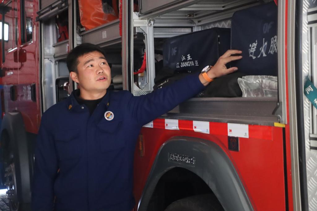 消防员正在讲解消防车的装备