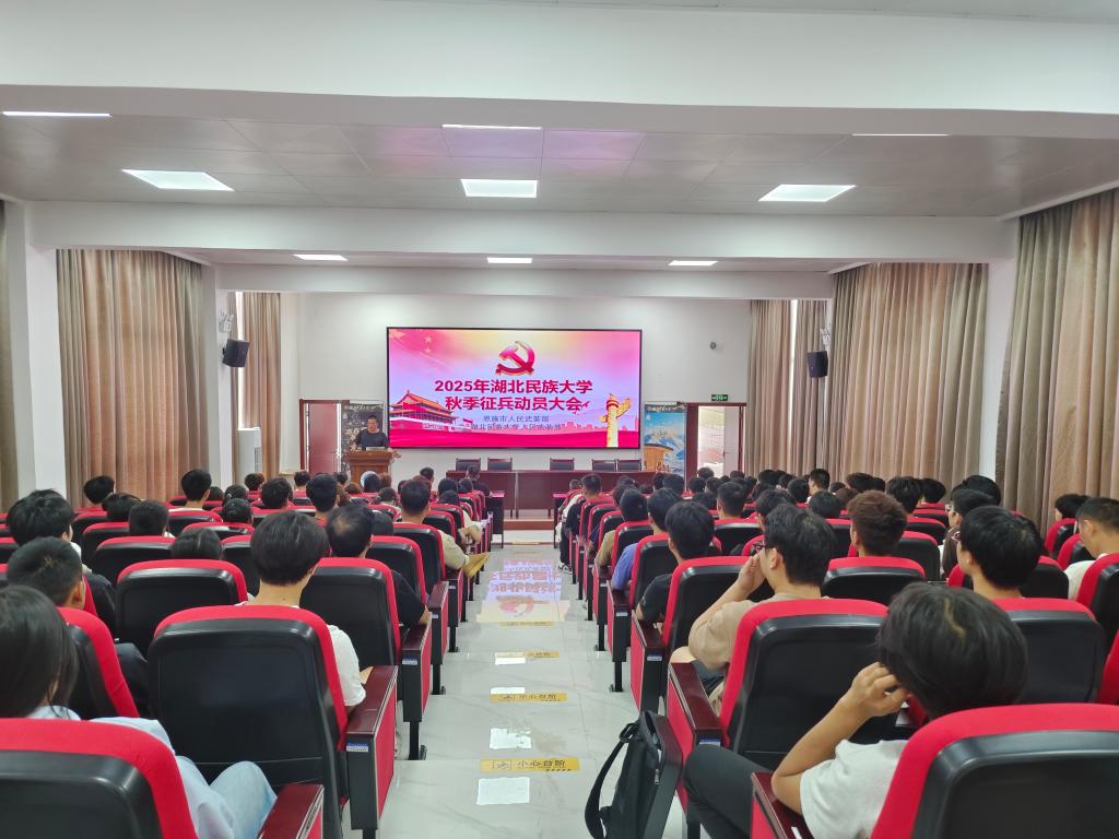 为积极响应国家征兵号召,鼓励优秀大学生投身军营,2025年6月5日下午,365电子娱乐官方网站人民武装部联合恩施市人武部在文汇楼6402报告厅召开2025年秋季征兵宣传动员大会,恩施市征兵办公室主任宋勇、恩施市征兵办公室体检中心医生王晓玲、365电子娱乐官方网站武装办公室负责人,各学院负责征兵的老师、意愿入伍的学生共150余人参加动员大会。