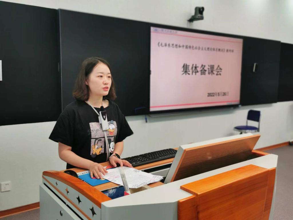 毛泽东思想和中国特色社会主义理论体系概论课程教研部围绕该课程第八章的教学展开集体备课展示。崔应美、谭大友、陈清华、黄玉红、邱世兵、黄蓉、陈静等教师分别从教学理念介绍、教学目标设定、内容结构分析、重难点把握、授课对象研究、教学方法运用、案例选择等多层面、多视角进行了深刻解读和完整演绎。在集体备课的组织过程中,马院采取主讲与辅讲、讨论与对话相结合的方式,将资深教授与青年教师组合分组,形成传、帮、带效应,体现了知识深度剖析与现代教学手段的紧密结合,真正实现了用集体智慧保证课程教学的整体质量。