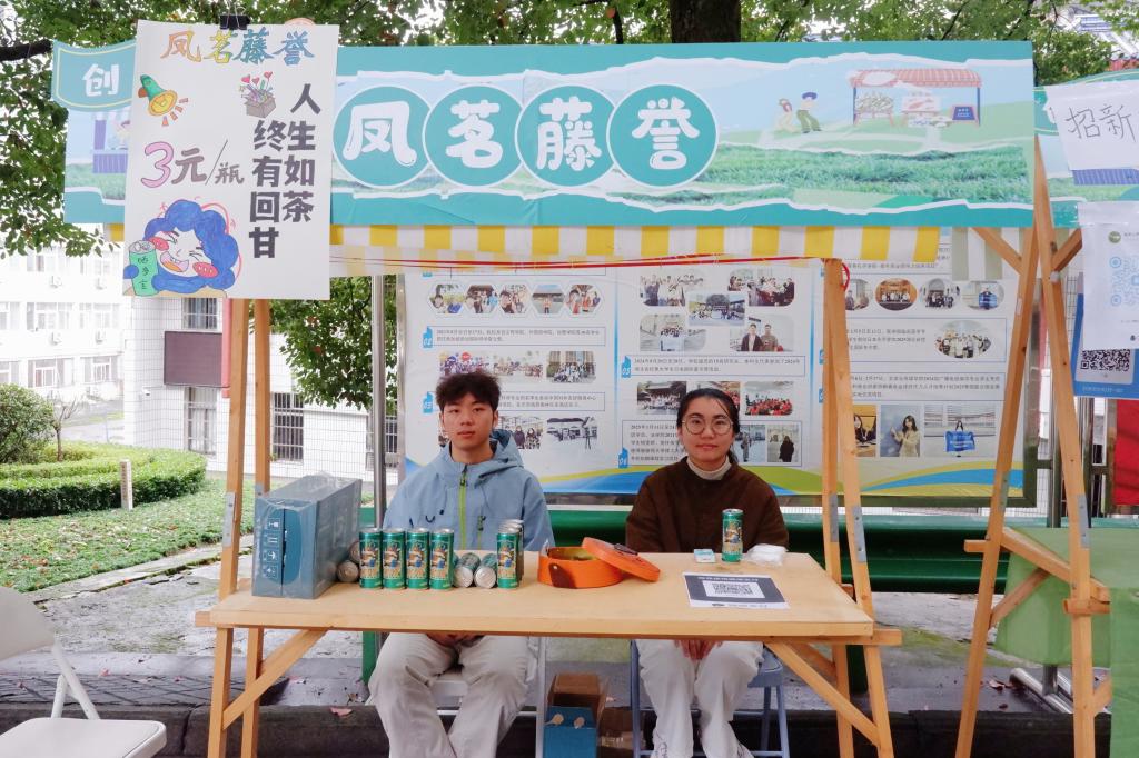 在养生青年专享区,小巧便携的茶包不仅设计贴心,冲泡后更在寒湿天气中送来阵阵暖意。此外,还有富含地方特色的恩施藤茶制成的茶饼,以及创业团队自主研发的水果富硒饮料,因其具有抗氧化、改善睡眠、延缓衰老等多重功效,吸引了大量师生驻足选购。同时,也有把脉问诊活动,便于师生及时调整。