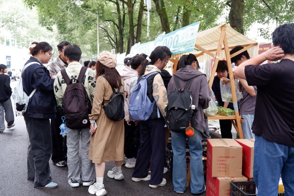本次集市在轻松有序的氛围中,自然形成了三大特色交流区域——养生青年专享区、手作创意体验区与零食福利抢购区,为师生带来丰富多元的创意互动与购物体验。