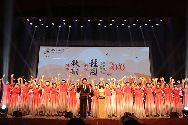 古筝合奏《我爱你,中国》队列表演《中国军魂》健身操《最好的舞台》舞蹈《盛世欢歌》歌舞《最美的太阳》本网讯(通讯员 王语)9月25日,我校2020年迎新晚会在音乐舞蹈学院演播厅举行。全校学生通过云小青---“云端桂花园”直播平台进行收看。晚会在音乐舞蹈学院带来的古筝合奏《我爱你,中国》中拉开序幕,悠扬的古筝声中表达了民大学子对祖国的热爱和盛世的祝福。一首《山楂树》掀起一段美丽的英雄故事,引人入胜。离退休人...
