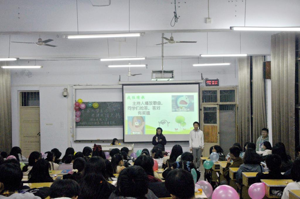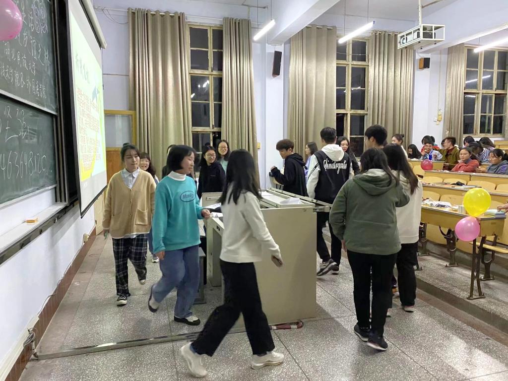 活动在一首由生物科学与技术学院的男生带来的歌曲《飘向北方》拉开序幕。接着,进入游戏环节。首先进行的是热身游戏——击鼓传花,即参与者们围成一圈,由主持人播放音乐并掌控游戏秩序,参与者们将手中的气球依次传递,当音乐停止时,手持气球的参与者就要为在场的参与者表演一个节目。在热身游戏后,现场氛围得到了一定的活跃。紧接着是游戏“抓鸭子”,“猜歌名”,“你猜我在想什么”,“折纸飞机”及“抱团”。其中,在“猜歌名”“折纸飞机”及“抱团”这三个游戏中,参与者们积极参与,现场活动氛围达到高潮。游戏环节结束后,由主持人总结陈辞,宣布本次活动结束。