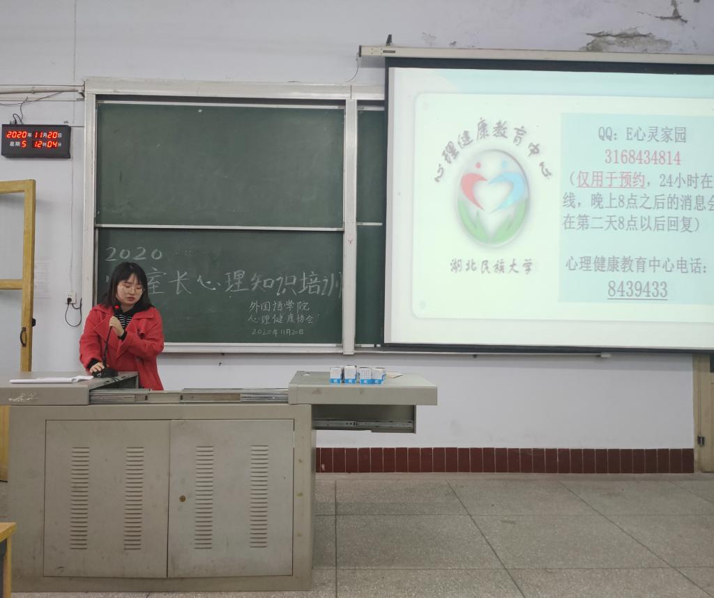 时间:2020-11-22 编辑:学生科 点击:(通讯员廖静薇 摄影杜丹彤/黄云涛)为解决大学生心理问题,关注心理健康,11月20日中午,由外国语学院心理健康协会主办的主题为“和谐相处,温暖你我”寝室长心理知识培训于外国语学院6401教室举行。学生科田甜老师担任本次活动主讲人。外国语学院大一及大二年级全体寝室长参加本次活动。