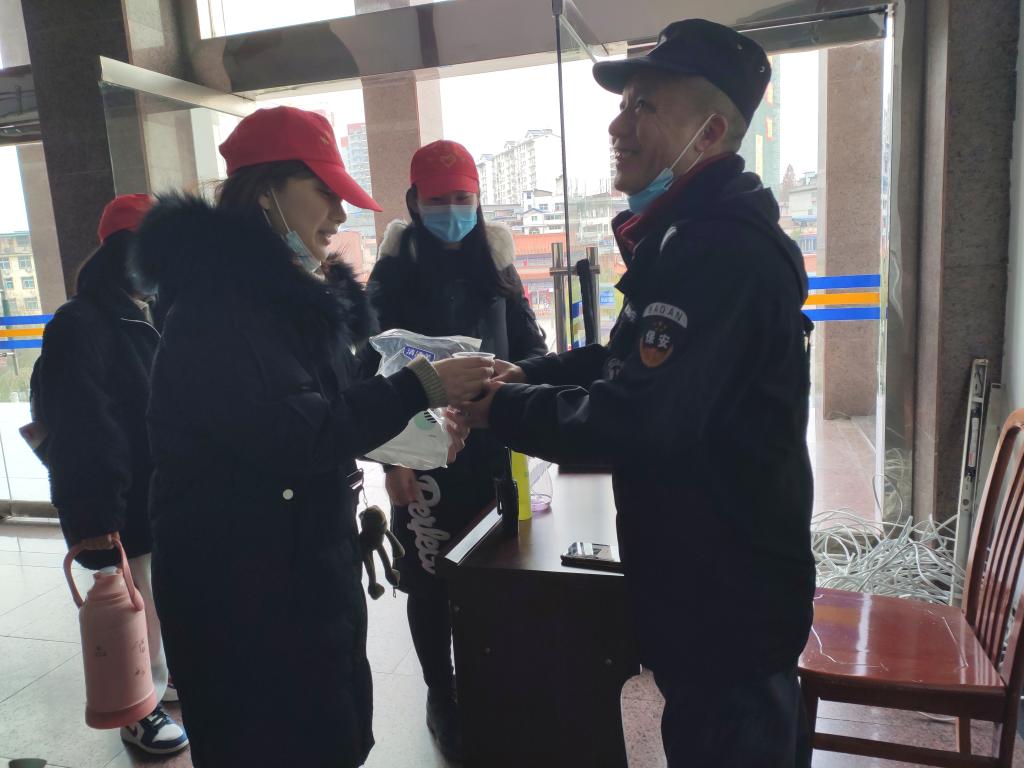 据悉,本次服务活动旨在进一步弘扬青年志愿者“奉献、友爱、互助、进步”的志愿者精神,提升志愿者的服务质量;同时,也在寒冷的冬日为坚守岗位的工作人员送去温暖与关怀,有利于使志愿者们学会心存感恩,将志愿奉献的精神传播得更远更广。