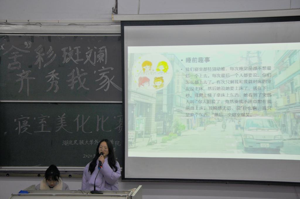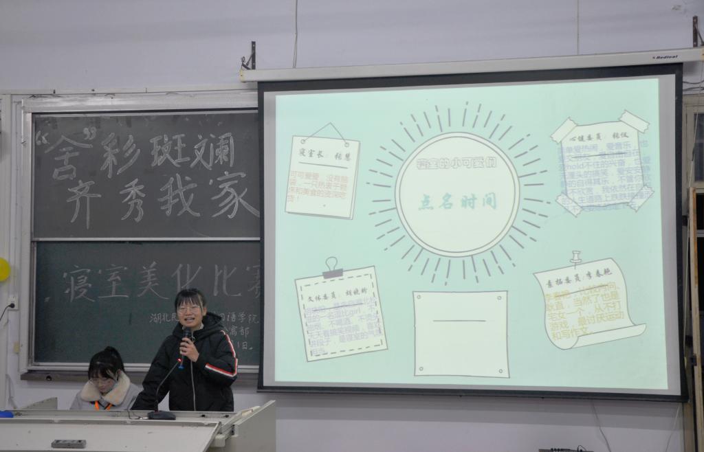 (通讯员 夏澳丽 摄影 蓝雨旋 柴新宇)为进一步推进寝室文明建设,营造良好的寝室文化氛围,12月1日晚,由我院公寓部主办的寝室美化大赛决赛于6402教室顺利开展。我院学生科老师田甜、学生会主席余洪霞、副主席洪程及365电子娱乐官方网站公寓部副部长颜福帅担任此次活动评委。
