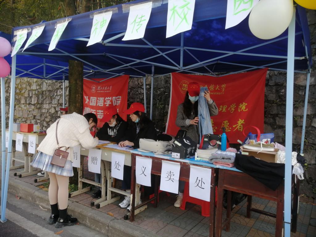 活动伊始,活动负责人集结全体志愿者进行培训并讲解本次活动需要注意的相关事宜。本次活动形式丰富,灵活度高,在校全体师生可自愿捐赠物品或将物品变卖。本次义卖设有猜题有奖活动,捐赠者均可参与。活动期间,我校师生积极参与,纷纷将自己的闲置的书本、衣物、背包等学习及生活闲置物品拿出进行变卖或捐赠,志愿者们也细心地将同学们所捐赠及变卖的物品进行分类整理。活动结束后,志愿者对场地进行打扫,恢复场地卫生。