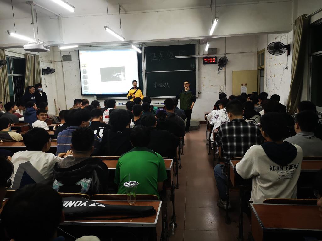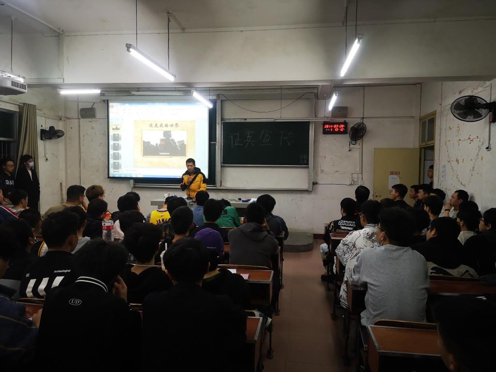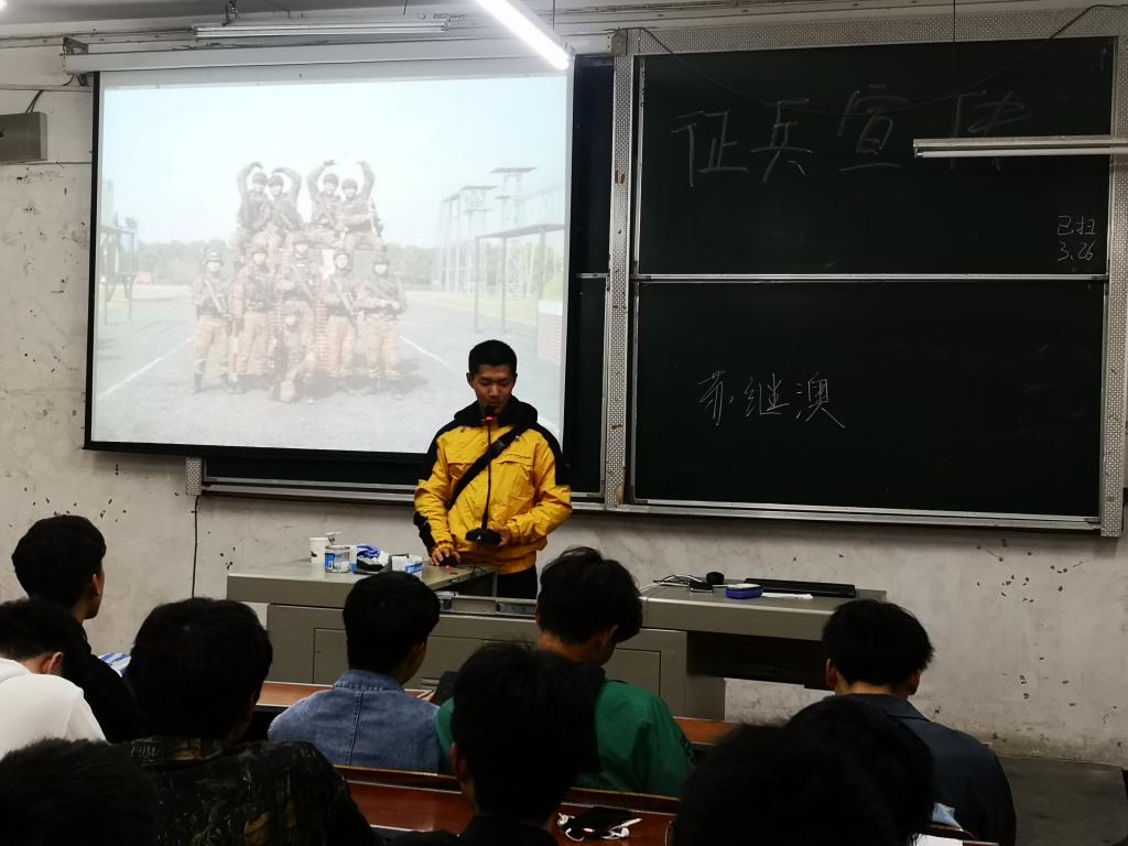 整个宣讲会持续一个小时,图文并茂,幽默风趣,配合各种照片,让外国语学院男生们上了一堂有意义的国防教育课。
