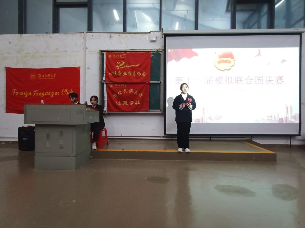 本网讯(记者 魏秋燕)为培养大学生协作精神,进一步扩大学生国际视野,4月23日,外语俱乐部联合法苑学社及心逸就业指导协会在修远楼5B403教室举办以“新型传染病全球防控与治理”为议题的第十一届模拟联合国大赛决赛。此次活动面向我校全体师生。