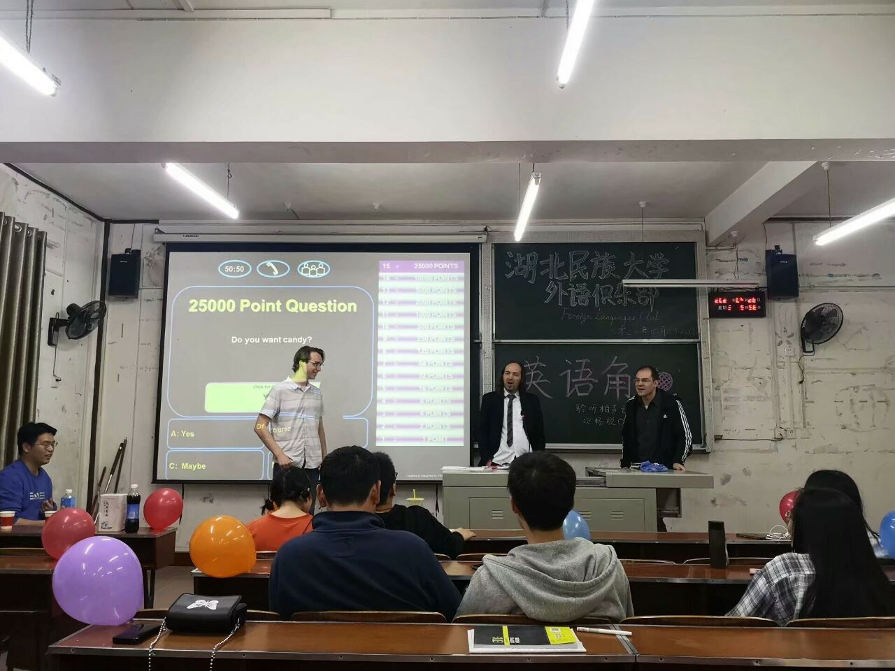 时间:2021-04-29 编辑:学生科 点击:本网讯(记者 文小红)为切实提高大学生英语口语能力和综合水平,激发大学生学习英语热情,4月28日19:00,外语俱乐部于6B201教室举办以“聆听相声之趣,欢畅脱口秀之美”为主题的英语角活动。外教Stephen应邀参加此次活动。此次活动面向我校全体师生。