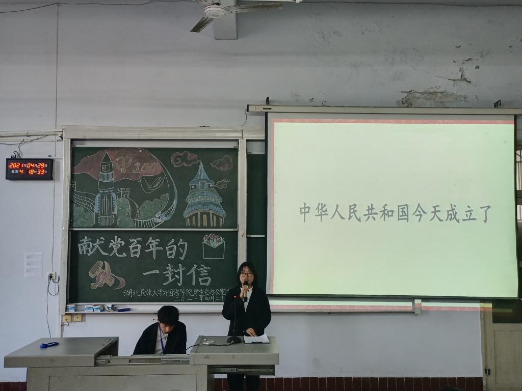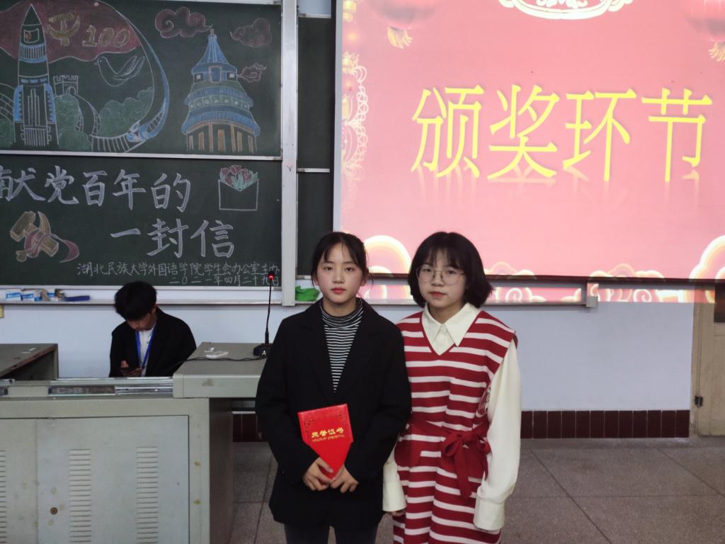 时间:2021-05-06 编辑:学生科 点击:本网讯(通讯员 李梦然/摄影 赵雪 柴新宇)4月29日晚,我院于文汇楼6401教室成功举办“献党百年的一封信”征文活动。学生会主席余红霞、团委副书记向俊逸、学生会副主席洪程莅临现场并担任评委。