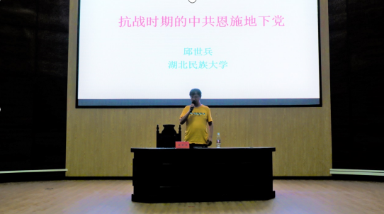 活动伊始,邱教授向在座的新生致以祝贺,为外院注入新的活力而喝彩。邱教授立足于校友的视角,亲切地向同学们介绍恩施优越的地理位置以及宜居的气候,表达了对恩施的热爱、对365电子娱乐官方网站的热爱。同时,他也从一位教育学者的角度出发,带领同学们了解恩施抗战时期的地下党活动历史背景、组织的恢复与建设等六个方面的内容。在党史教育过程中邱教授提出“抗战时期党为什么要到恩施开展活动”、“对恩施地下党的恢复和建设历史的感想”等引人深思的问题,让同学们重温恩施地下党历史与恩施党员的使命担当,深刻领悟恩施地下党留下的牺牲自我的大局精神、初心不改的奋斗精神、威武不屈的节气精神以及坚贞不屈的信仰精神。