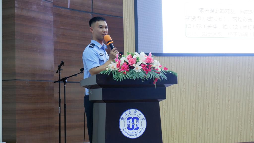 时间:2021-09-10 编辑:学生科 点击:本网讯(通讯员 李梦然/摄影 王本权)安全无小事,责任大于天。为有效防范化解校园内各类安全风险,坚决守住校园安全底线,切实维护全校学生安全和校园稳定。9月9日晚,我院于图书馆报告厅成功开展防范电信网络诈骗宣讲。此次活动恩施市公安局土桥坝派出所民警罗浩主讲,以灵活、有趣、生动的宣讲方法向同学们普及了网络电信诈骗的相关知识。