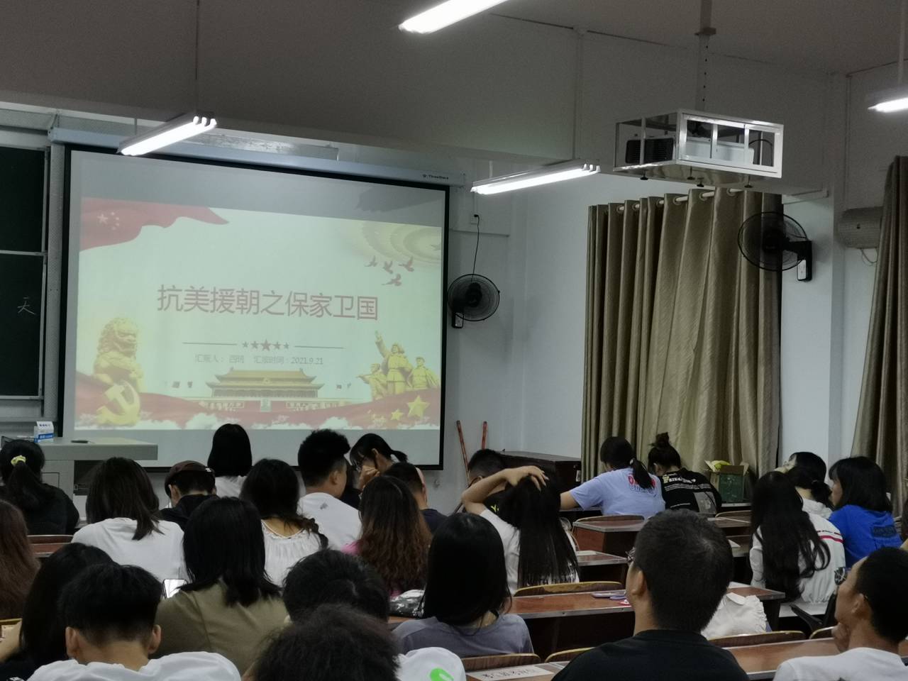 第十一讲以“抗美援朝,保家卫国”为主题,通过对抗美援朝背景、过程及意义的学习,让同学们继承和弘扬伟大抗美援朝精神,坚守初心和使命,努力学习,建功立业。