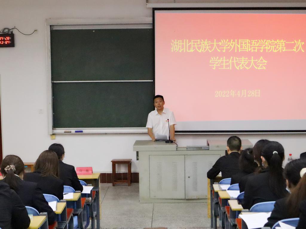 时间:2022-04-29 编辑:学生科 点击:本网讯(通讯员 周海艳 摄影 詹佳莉 张艺佳 纪洁)2022年4月28日,外国语学院第二次学生代表大会于6401召开。出席本次大会有学院党总支书记严森、校团委副书记向驰、学生科科长粟登平、学生科辅导员陈小双、团总支书记汪丽娟以及代表团正式代表。