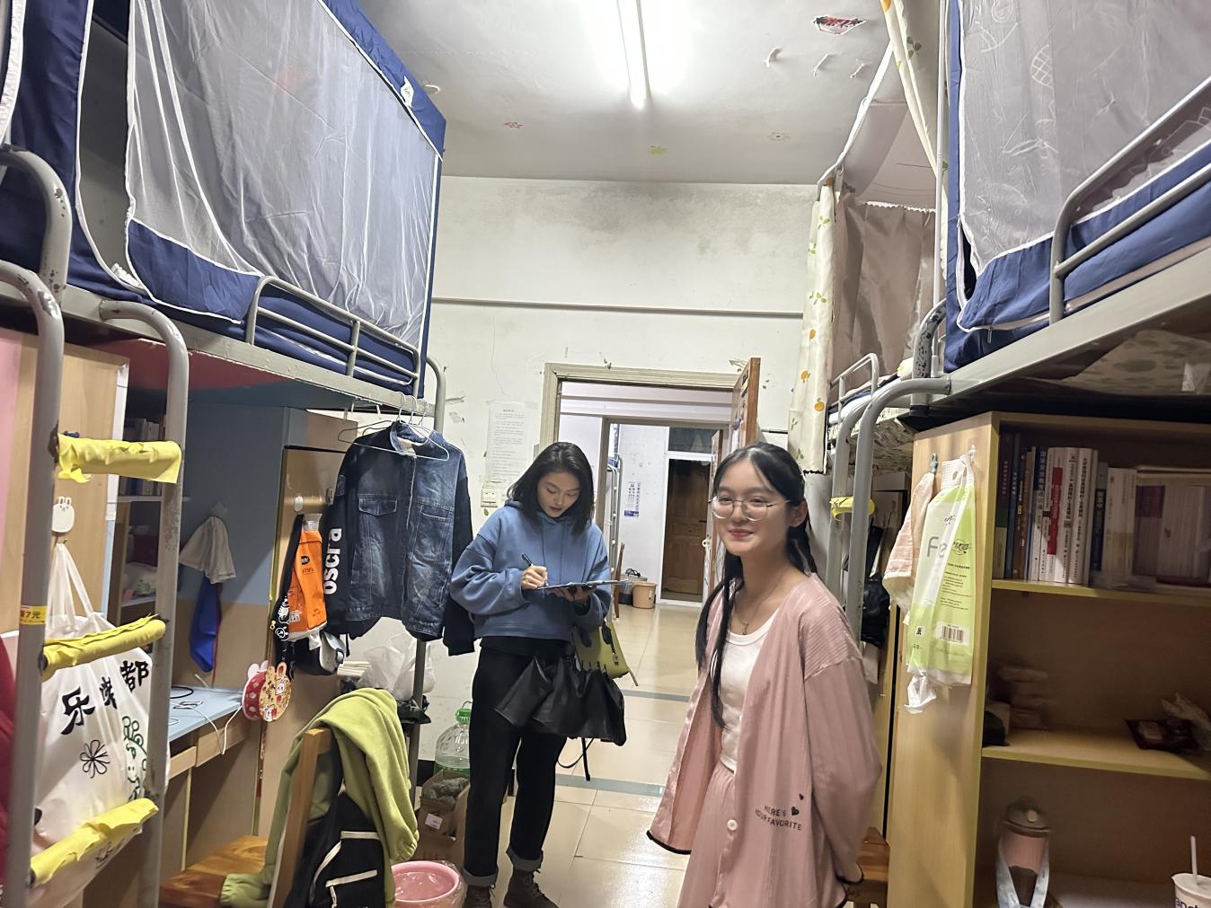 公寓管理委员会与心理健康协会的学生干部走访寝室