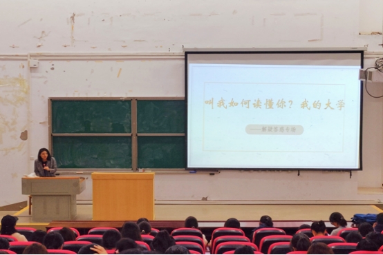 10月19日,在修远楼5A207教室里,外国语学院在校生代表国家奖学金获得者熊诗英、国家励志奖学金获得者张慧、社会实践优秀个人肖曾洁三名同学围绕大学期间的学习、工作和实践,向大一新生宣讲着自己的励志成长故事和奋斗历程,现场气氛热烈、精彩纷呈。当被问及如何克服在学习中遇到的困难时,熊诗英说道“求学的道路必定不会是一帆风顺的,面对困难时,我会反复告诉自己,坚持下去!勇敢一些!坚持就是胜利,就是这样的心态,让我渡过了一次又一次的难关”熊诗英同学如此铿锵有力的回答鼓舞了现场每一位新生。