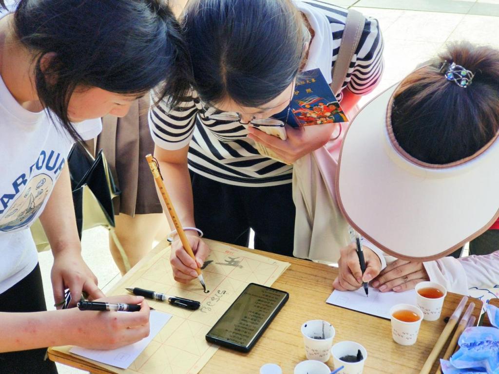 随后开展了跨文化交际“国际旅行护照”集章活动,十个不同的展台对应十个风格各异的国家。同学们可以通过游戏、问答等形式,了解不同国家的文化特色和风俗习惯。此外,文化展示区还展示了各国的特色美食,手工艺品,吸引了众多参观者的驻足欣赏。埃塞俄比亚展区的咖啡知识竞赛、阿拉伯展区的书法体验、冰岛展区的自然知识问答等一系列活动都深受欢迎。