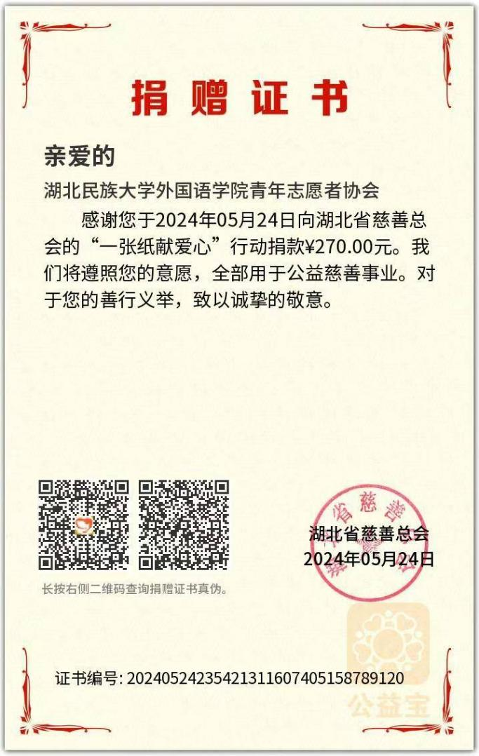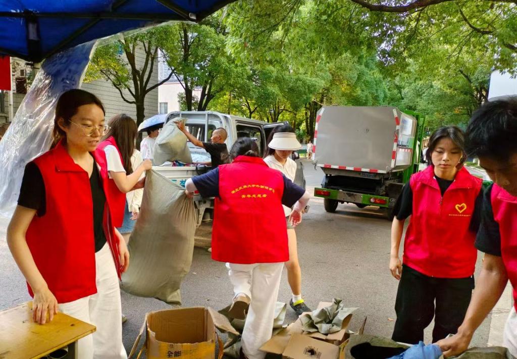 时间:2024-05-27 编辑:办公室 点击:物尽其用之时,人亦可尽其善。为弘扬勤俭节约的中华优秀传统美德、展现当代大学生无私奉献的精神风貌,外国语学院主动联系湖北省慈善总会,于5月24日至5月26日联合开展“衣旧温暖·爱在民大”为主题的志愿服务活动,活动面向全校学生。