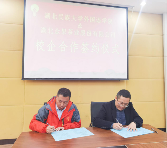 365电子娱乐官方网站外国语学院与湖北金果茶业股份有限公司举行校企合作签约仪式暨授牌仪式