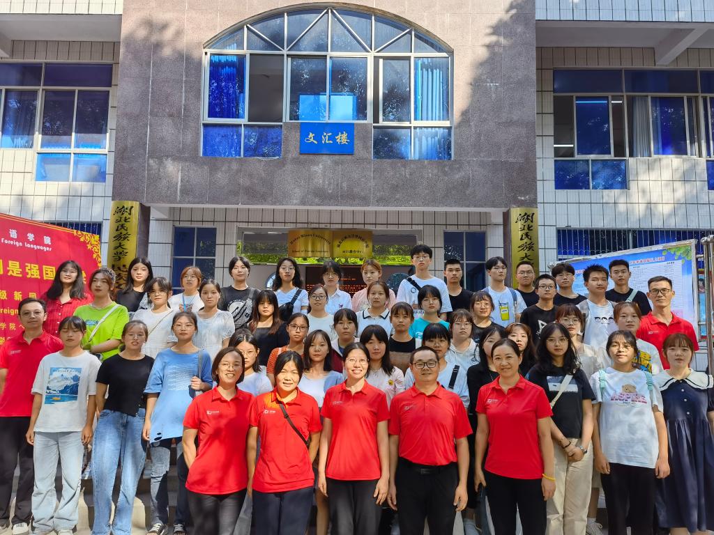 会后,见面会所有师生在外国语学院教学楼前合影留念。