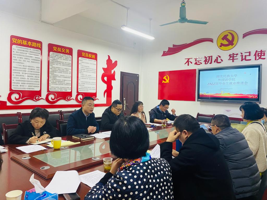 时间:2022-03-25 编辑:谭 点击:3月24日下午,我院2022届毕业生就业工作推进会在外国语学院会议室召开,学院领导班子成员、各系部和科室负责人、毕业班班主任及全体辅导员参会。会议由党总支书记严森主持。