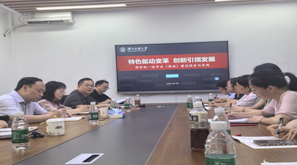 2024年6月20日下午2点,外国语学院四楼会议室座无虚席,外国语学院教工支部举行了以“党建与业务深度融合,党建引领专业建设高质量发展”为主题的支部主题党日活动。常规学习之后,支部开展了一场别开生面的“党建+专业建设”主题研讨特色实践活动,学校党委常委、统战部部长田景福,外国语学院领导班子成员、第一教工支部全体党员、兄弟支部代表以及英语系非党员教师参加了本次活动。