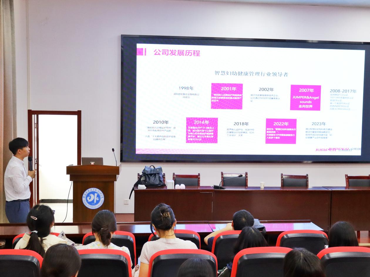 6月13日,深圳京柏医疗科技股份有限公司招聘主管张梦柯来我院宣讲,他以视频和PPT的形式向学生们介绍公司发展历程、发展现状、业务板块和天使医生服务等方面的内容。