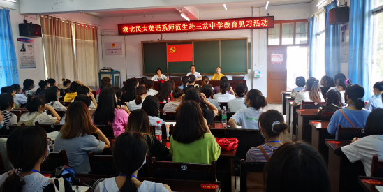 本次活动中,首先由恩施市三岔中学校长谭家雄老师对此次活动的安排进行详细介绍。然后,参加见习的同学们分组进入八年级和九年级的各班级,观摩英语教学的真实课堂,并完成两节课的听课记录。观摩结束后,全体见习同学与三岔中学的相关教师在三楼会议室进行了座谈,座谈分别从英语教材内容的二次开发、课堂教学方法、信息技术融入、班主任管理等方面展开了热烈深入的讨论。