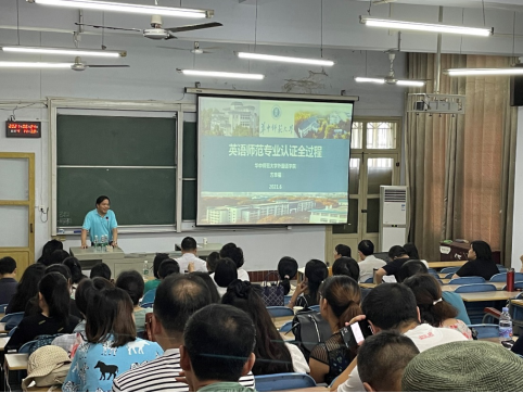 时间:2021-06-25 编辑:hbmzu 点击:6月24日,华中师范大学外国语学院英语系主任方幸福教授受邀莅临365电子娱乐官方网站外国语学院,在外国语学院6401教室对全院教职工展开了题为“英语专业师范认证全过程”的专题讲座。外国语学院院长骆贤凤教授主持讲座,方教授从认证系统解读、材料撰写、前期准备、具体流程、如何整改和总体感想六个方面进行了详细介绍。