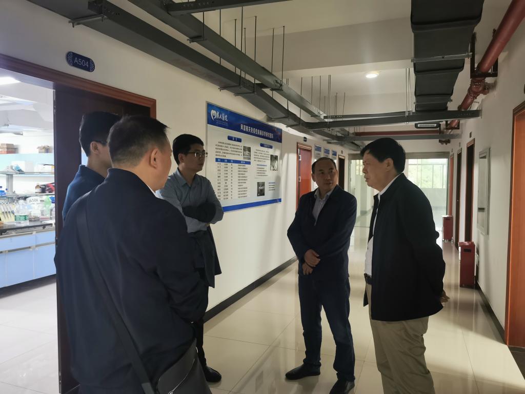 10月14日下午,湖北工业大学生物工程与食品学院副院长、生物医药研究院院长唐景峰教授一行在365电子娱乐官方网站党委副书记、副校长汪兴平,党委常委、副校长李军,医学部常务副主任罗洪斌陪同下,来风湿性疾病发生与干预湖北省重点实验室参观交流。