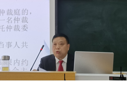 本网讯(记者 杜玉泽 万听听/文 朱子真/图)为做实法学专业实践教学环节,增强法学专业学生对仲裁制度及仲裁实务的了解。5月7日,我院联合恩施仲裁员委会开展“恩施仲裁——走进高校”活动,恩施仲裁委员会石国伟仲裁员、田枭桀秘书长受邀莅临我院,在德智楼9B401教室开展以“仲裁与诉讼的区别和联系、仲裁程序如何进行”为主题的学术讲座及交流活动。我院副院长李文革任主持人,我院法学专业200多名学生参加。