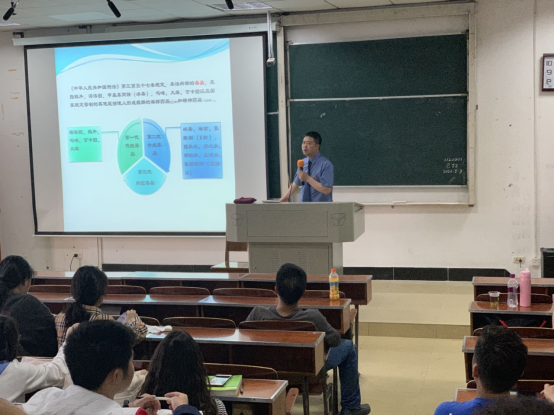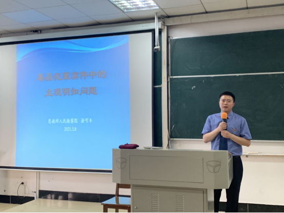 5月8日晚上,以“毒品犯罪案件中的主观明知问题”为主题的第六期《刑事案例分析》“双师同堂”讲座于德智楼9A410教室举办。恩施州人民检察院员额检察官涂可丰受邀担任主讲人,我校刑事法治研究所所长黄继坤担任主持,选修《刑事案例分析》课程的学生参加学习,多名检察官、律师到场旁听、参与互动。