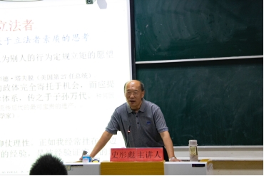 在“真正的立法者”讲座中,史彤彪教授运用大量案例分析了理性在立法中的重要作用,并对柏拉图、西塞罗、阿奎纳等九位西方著名思想家的立法思想进行了精要分析。在“被法律人误读的七个常识”讲座中,史彤彪教授通过对原典、人物的生平和创作背景等因素的考察,分析了“人治”“人生而自由,却无往不在枷锁中”等概念、名言名句的真实意涵。