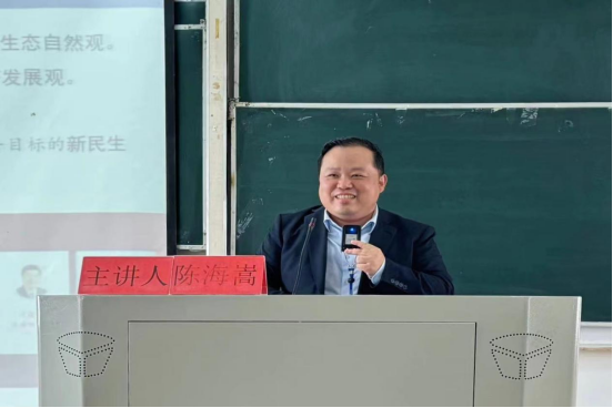 讲座伊始,陈海嵩对习近平法治思想的确立、核心内涵等内容进行阐述,强调学习习近平法治思想的重要性;其次对习近平生态文明思想的核心内涵进行论述,强调习近平生态文明思想为中国生态文明建设的指导思想和根本遵循;最后以党的二十大报告中“坚持绿水青山就是金山银山”的理念结尾,呼吁同学们积极参与生态环境保护,成为关注大自然的法律人。