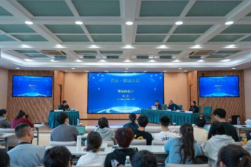 本网讯(记者 邬林峰 朱宇/文 黄卓然/图)4月12日,“刑法的语言”专题讲座在我校德智楼远程教学观摩室举行,由北京大学法学院副院长、犯罪问题研究中心主任、博士生导师、教育部“长江学者奖励计划”特聘教授、第九届“全国十大杰出青年法学家”、《中外法学》副主编车浩教授主讲,法学院多位教师及百余位本科生、研究生参加了讲座。讲座由法学院副院长蔡世鄂副教授主持,周详教授、蔡颖博士和黄继坤副教授参加与谈。