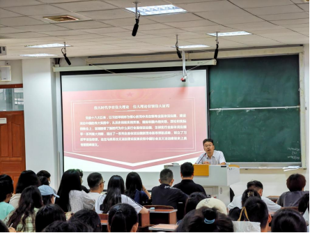 本网讯(记者 朱宇/文 )7月1日,“习近平法治思想的人民性”专题讲座在院9B301举行,由第十三、十四届贵州省人大常委会立法专家,贵州省法学理事,兴义民族师范学院教授、法学博士杨振宁主讲,法学院百余位师生参加了讲座。讲座由蔡世鄂副院长主持。