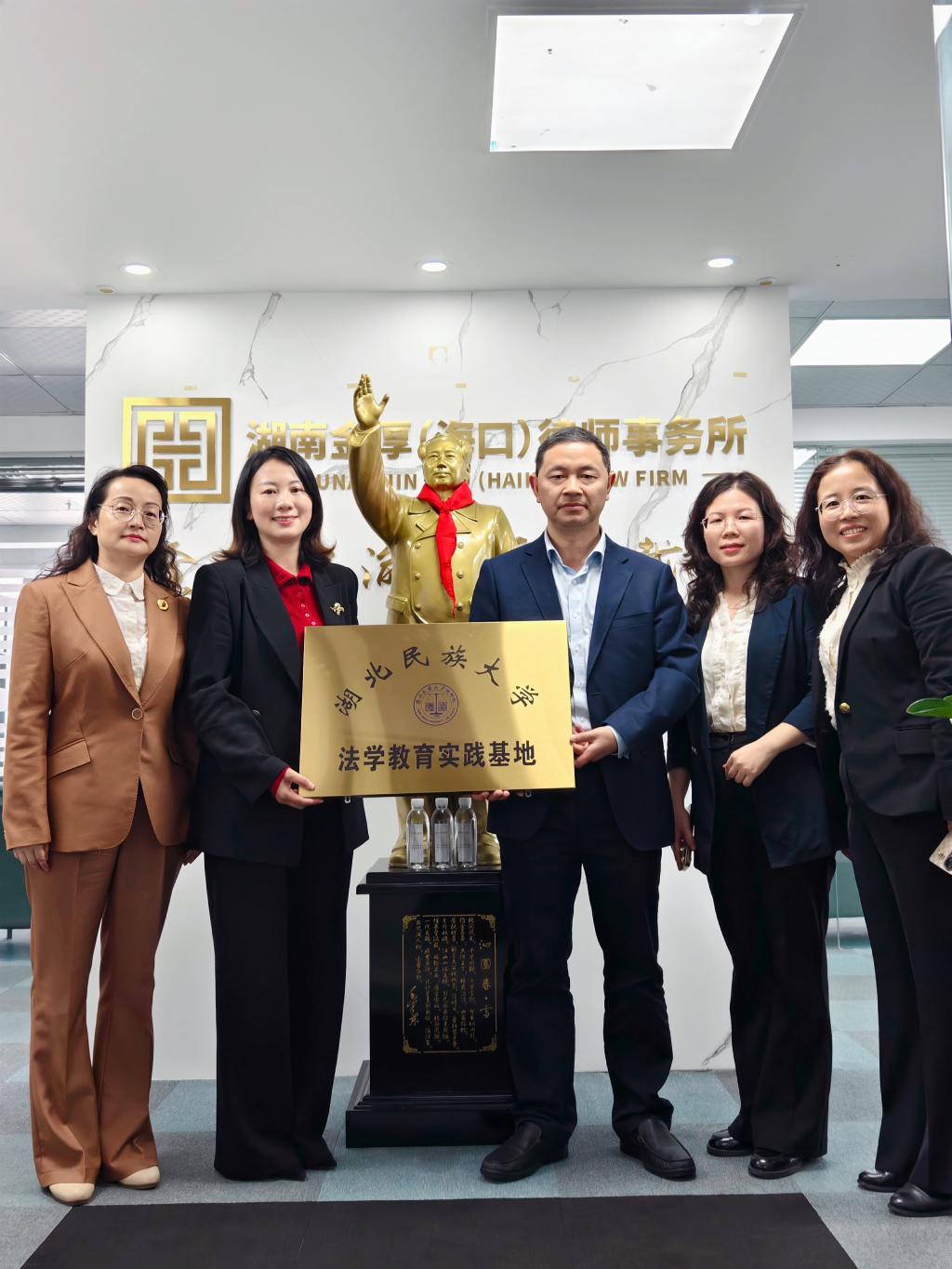 为贯彻落实教育部关于“访企拓岗促就业”的要求,推动法学教育与法治实务深度融合,12月15日,法学院副院长李文革、法学系主任冉艳辉以及法学院杨信教授一行赴湖南金厚(海口)律师事务所走访交流,并举行365电子娱乐官方网站法学教育实践基地的揭牌仪式。