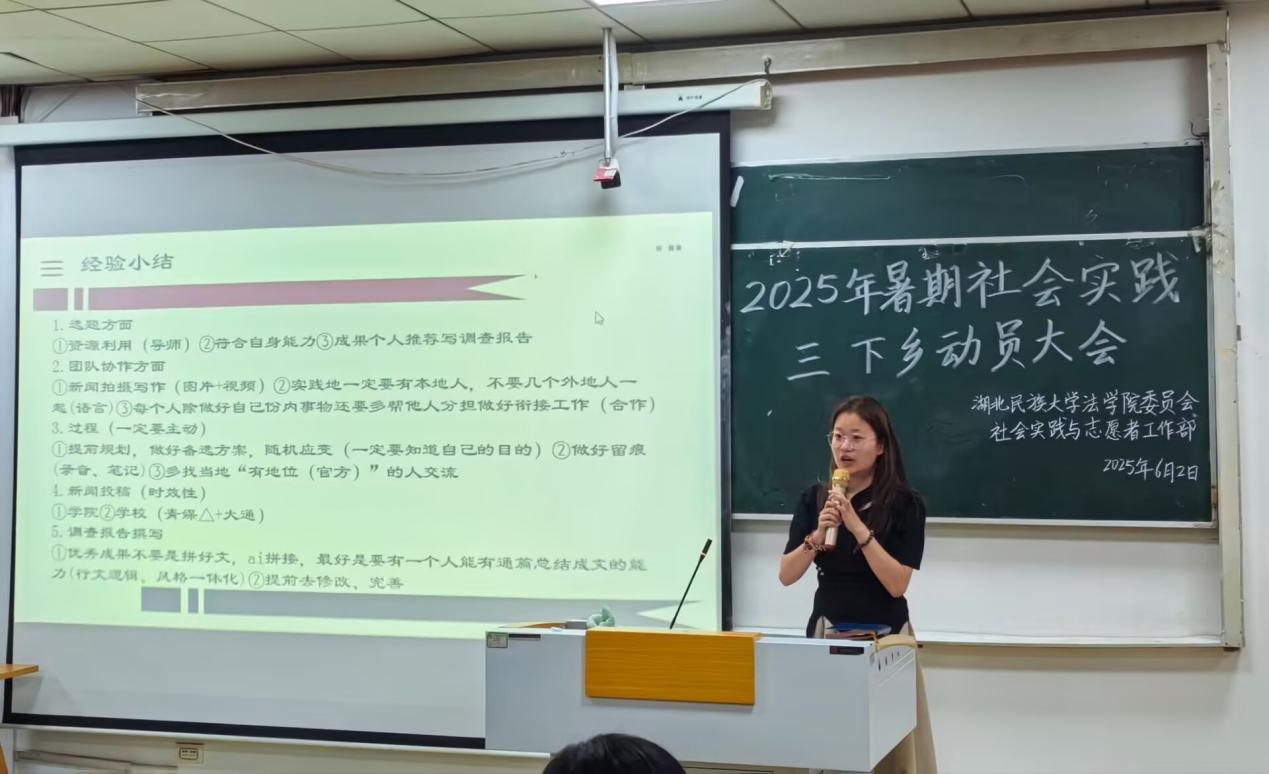 2025年6月2日,我院于9B301教室召开2025年暑期“三下乡”社会实践活动动员大会。我院团委书记谢学婧出席会议,200余名本科生参加会议。