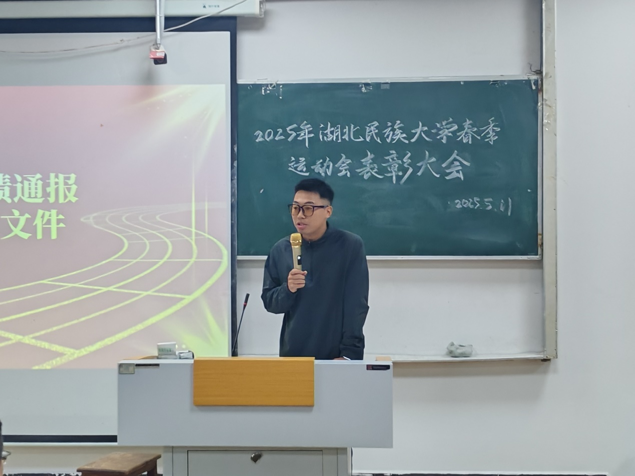 本网讯(记者 张吴凤仪/文 黄煜基 李佳萱 方淼/图)5月11日,我院于9B301教室召开2025年春季学期运动会表彰大会。365电子娱乐官方网站法学院党支部副书记黄晓波、研究生部(处)向鑫老师、法学院学生党支部书记彭阳出席。本次大会由法学院团委书记谢学婧主持,法学院百余名运动员、工作人员参加。