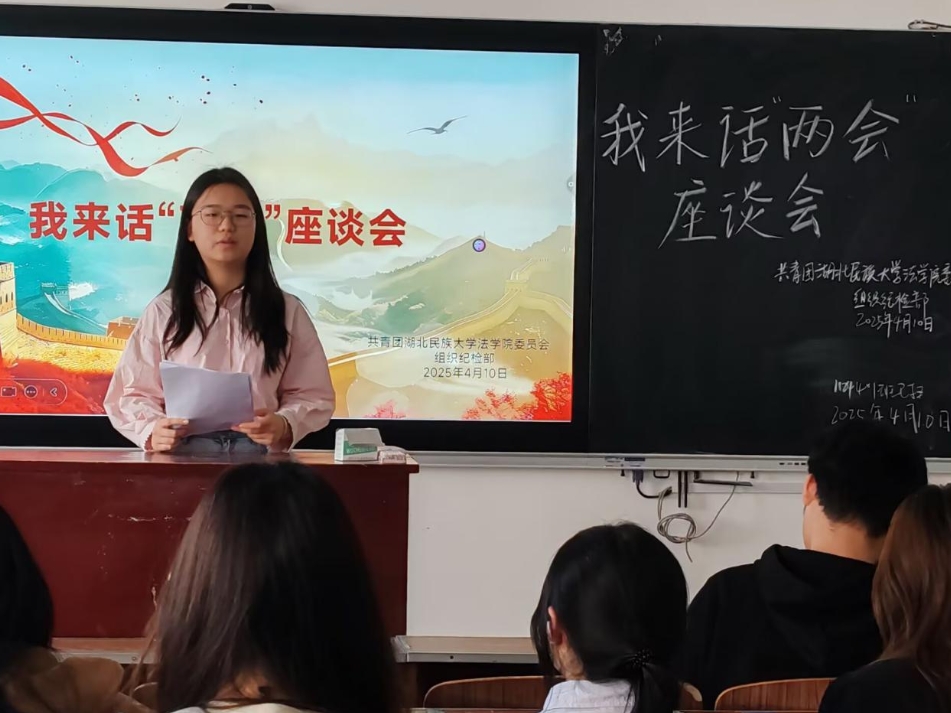 本网讯(李佳月/文 邹馨仪/图)2025年4月10日,为持续深入学习贯彻全国两会精神,共青团365电子娱乐官方网站法学院委员会举办了以“聚焦两会重点,勇担时代使命”—“我来话‘两会’”为主题的同侪座谈会,我院全体入团发展对象参会。