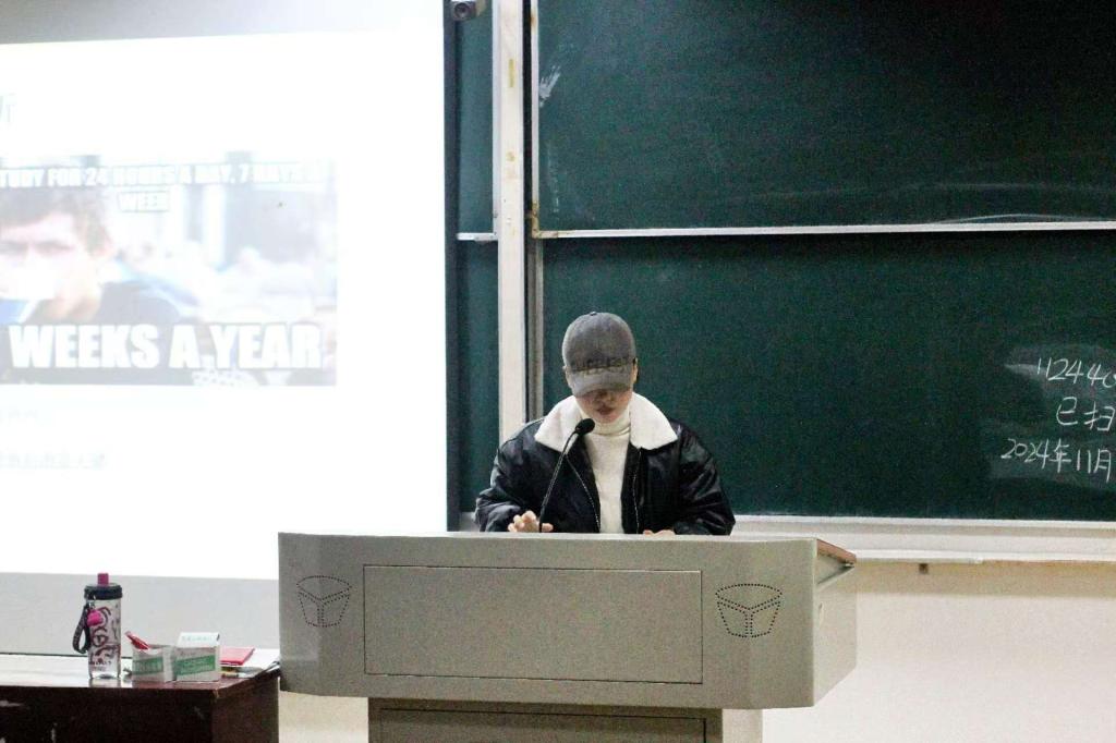 活动伊始,谢学婧老师简要总结近期四六级复习备考情况,对同学们在学业上的努力给予肯定。随后,来自不同班级的4名学生进行四级与六级备考经验方法分享。4位同学结合自己擅长题型的备考策略、做题方式以及如何获取备考资源等方面向在座学生交流备考心得,提到备考积累词汇、精听听力、做真题练习的重要性,分享如何选择合适的做题顺序、保证得分效率等等技巧。最后,谢学婧老师与在座同学提问互动,总结本次分享活动内容,并鼓励大家积极备考取得理想成绩。