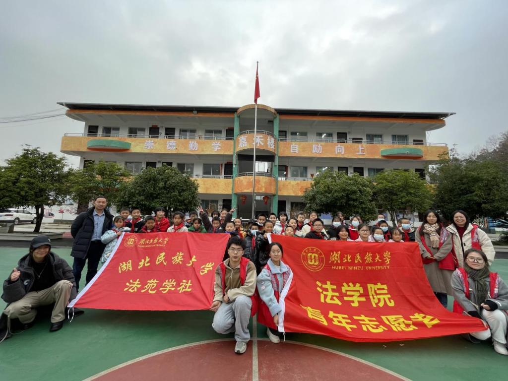 本网讯(通讯员 张昕、李佳欣)12月14日,我院在恩施市新塘乡下塘坝小学开展了以“法润青苗·共筑法治梦”为主题的法治宣传进校园活动,由法学院副院长李文革、团总支书记谢学婧带队。