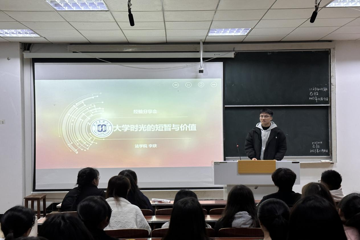 本网讯(记者 吕庆陆/文 谢雨颖/图)榜样领航,薪火传递。为充分发挥国家奖学金、特等奖学金的激励导向作用,勉励广大同学砥砺奋进、追求卓越。11月12日,我院在德智楼9B301举办“Leading Talk”国家奖学金、特等奖学金获得者经验分享会。本次活动邀请到国奖获得者李欣、卢玥同学和特奖获得者刘星宇、范玉同学进行交流与经验分享。我院王晶晶老师出席本次分享会,团总支书记谢学婧老师担任主持。2023级全体本科生到场参加此次活动。