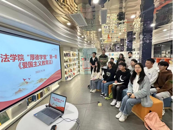 本网讯(记者 沈佳华/文 吴立文/图)11月10日,我院在倍阅书店二楼举办《中华人民共和国爱国主义教育法》读书分享会。此次活动邀请到我院舒登维博士担任主讲人,活动由学生科彭阳老师主持。