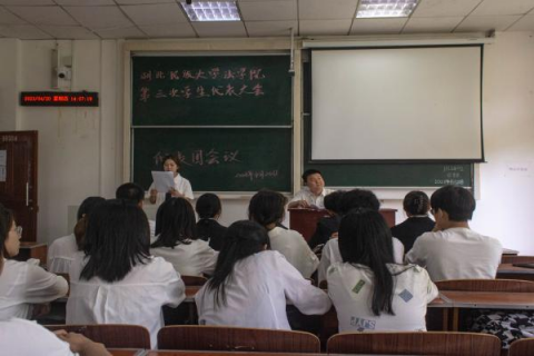 (本网讯 见习记者 陈咏琪 向新宇/文 罗长青/图)4月20日,我院于9A405会议室举行法学院第三次学生代表大会。我院党政办公室主任蔡世鄂、学生科科长阙嘉苗出席大会,校学生会代表肖壁玉与我院49位学生代表参与大会。