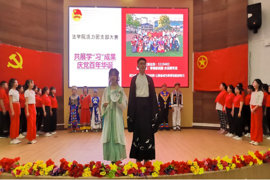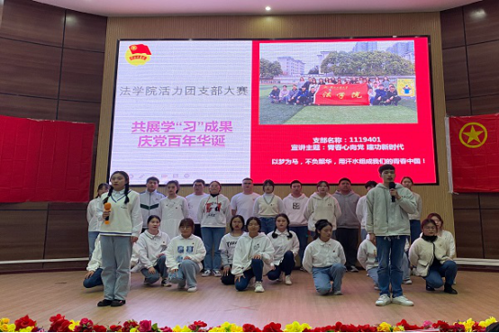 本网讯(见习记者 许帅伟 苏浩楠 喻晓凡/文 刘皇 李经玺/图)万里河山风雨急,千年英杰才情萃。为庆祝中国共产党百年华诞,共展学“习”成果,4月2日,我院于图书馆学术报告厅举办法学院活力团支部大赛。19级、20级共七个团支部参与此次比赛,文学与传媒学院团总支书记谭芸、信息与工程学院团总支书记谭俊妮、我院团总支书记阙嘉苗受邀担任此次比赛评委,党总支副书记许宗友受邀出席大赛。