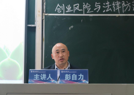 本网讯(记者 杜玉泽 见习记者 龙涛/文 刘皇 王雅琪/图)为培养学生创新创业能力,增强法律防范意识。11月21日,我院于德智楼9A410教室举办以“我敢闯,我要创,我会创”为主题的创业风险与法律防范知识讲座。湖北图盛律师事务所党支部书记、合伙人、企业法律事务中心负责人彭自力律师受邀出席担任主讲人。我院副院长李文革担任主持人,部分师生到场学习。